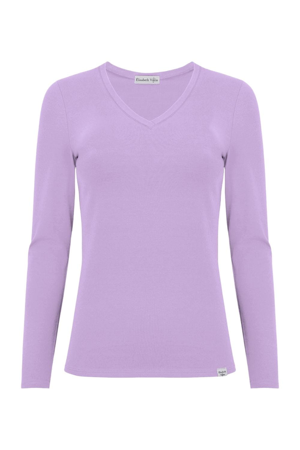 VERA – Lavendula - WISKOZA – taliowana bluzka z dekoltem "V" i klasycznymi długimi rękawami