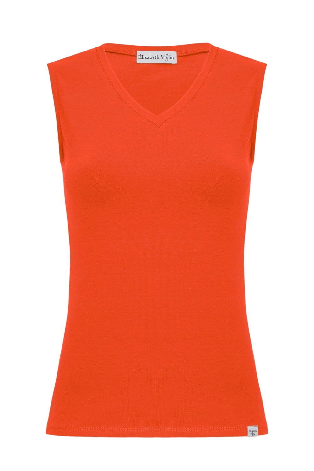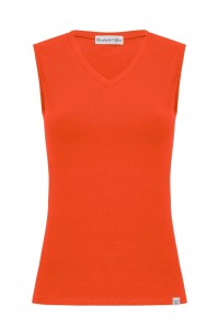 VERA – Mandarin Red - BAWEŁNA GŁADKA – taliowana bluzka z dekoltem "V" bez rękawków