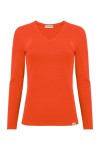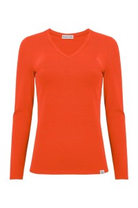 VERA – Mandarin Red - BAWEŁNA GŁADKA – taliowana bluzka z dekoltem "V" i klasycznymi długimi rękawami