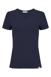 VERA – Patriot Blue - WISKOZA – taliowana bluzka z dekoltem "V" i klasycznymi krótkimi rękawami