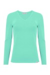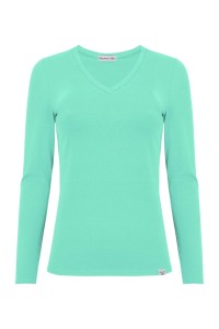 VERA – Pool Blue - BAWEŁNA GŁADKA – taliowana bluzka z dekoltem "V" i klasycznymi długimi rękawami