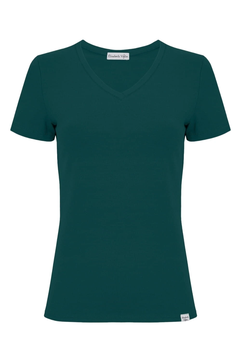 VERA – Sea Moss - BAMBUS – taliowana bluzka z dekoltem "V" i klasycznymi krótkimi rękawami