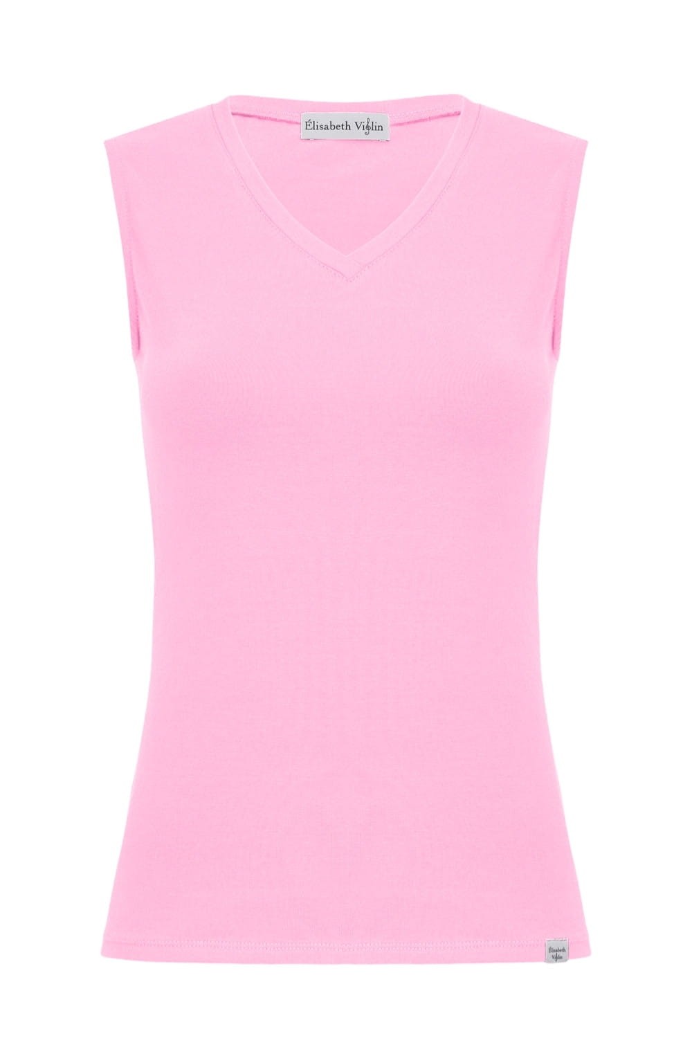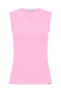 VERA – Sea Pink - WISKOZA – taliowana bluzka z dekoltem "V" bez rękawków