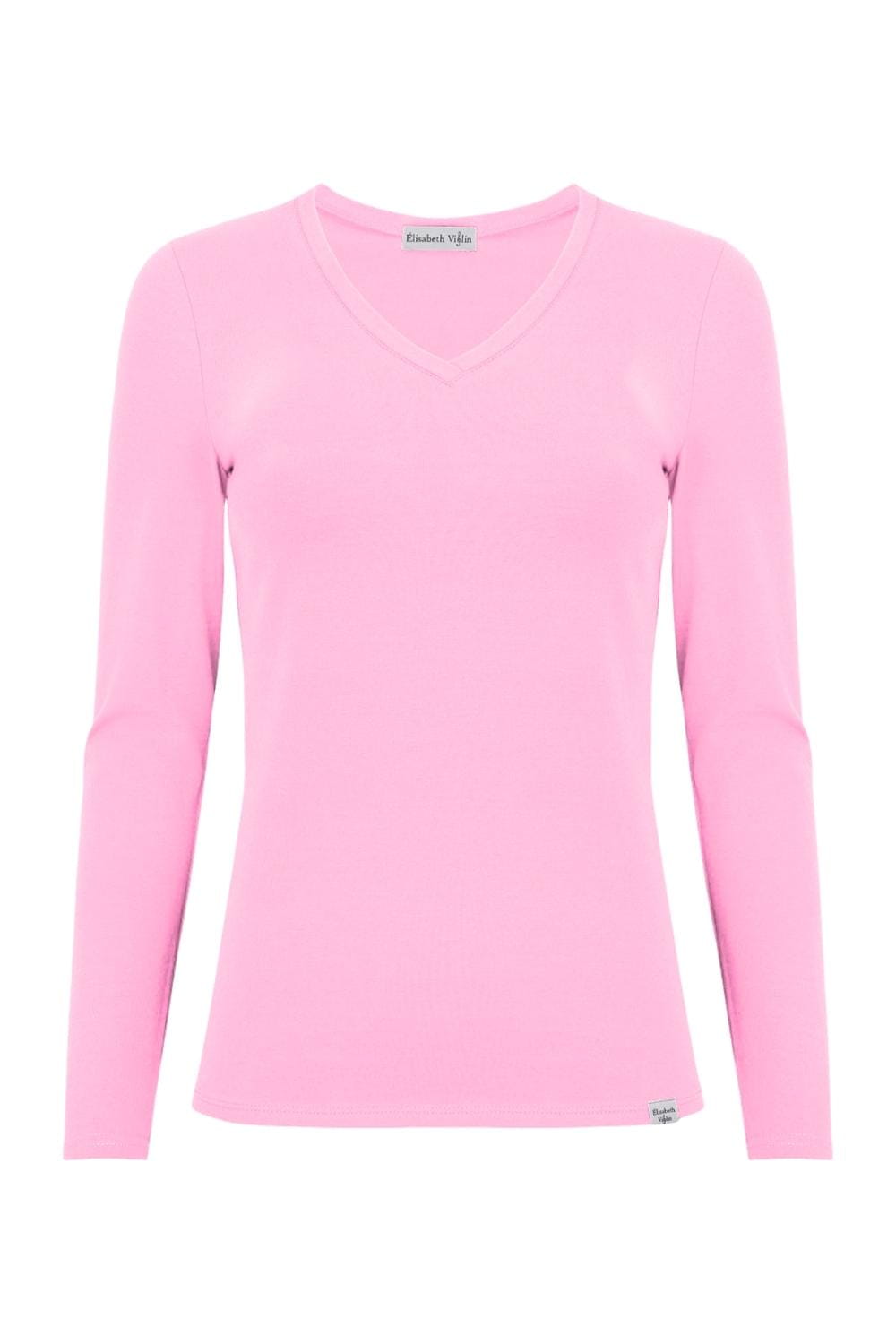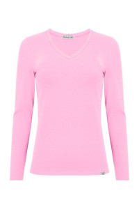 VERA – Sea Pink - WISKOZA – taliowana bluzka z dekoltem "V" i klasycznymi długimi rękawami