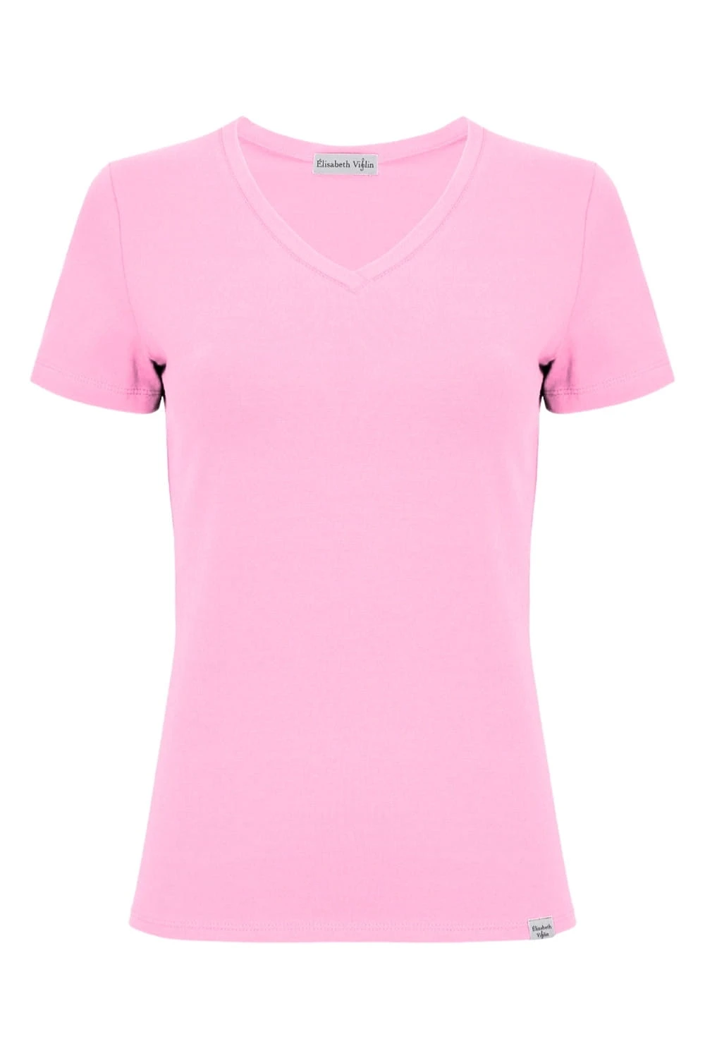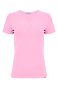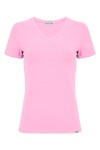 VERA – Sea Pink - WISKOZA – taliowana bluzka z dekoltem "V" i klasycznymi krótkimi rękawami