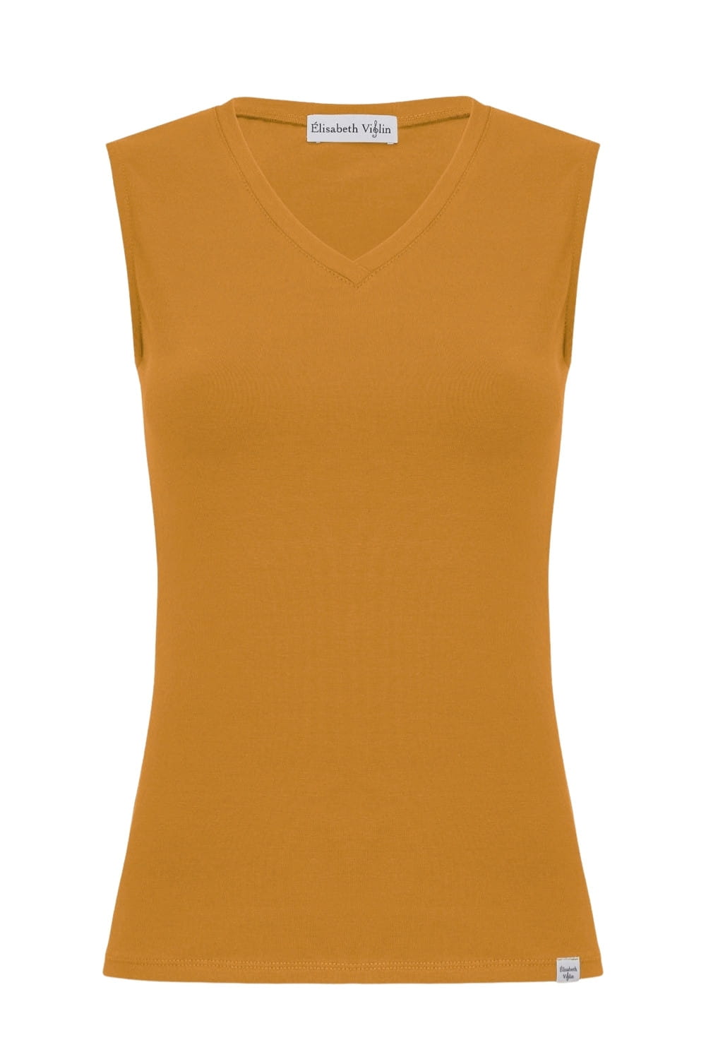 VERA – Sudan Brown - WISKOZA – taliowana bluzka z dekoltem "V" bez rękawków