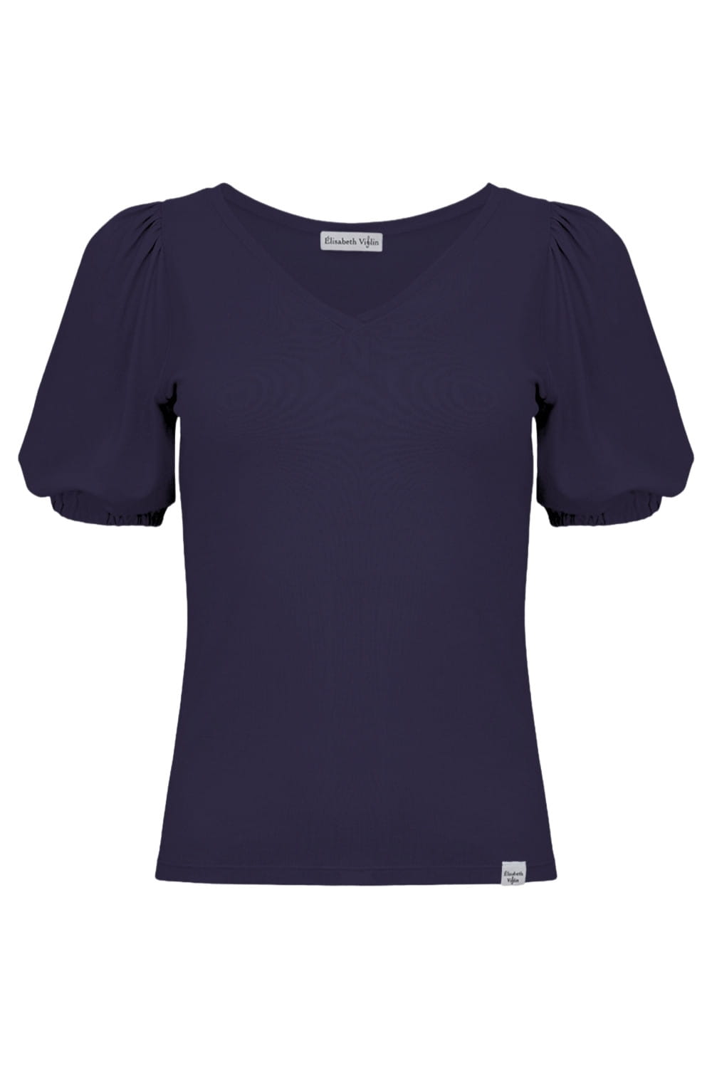 VIVA - Astral Aura - wiskozowa taliowana bluzka z dekoltem w serek i krótkimi rękawami z bufkami zakończonymi gumką