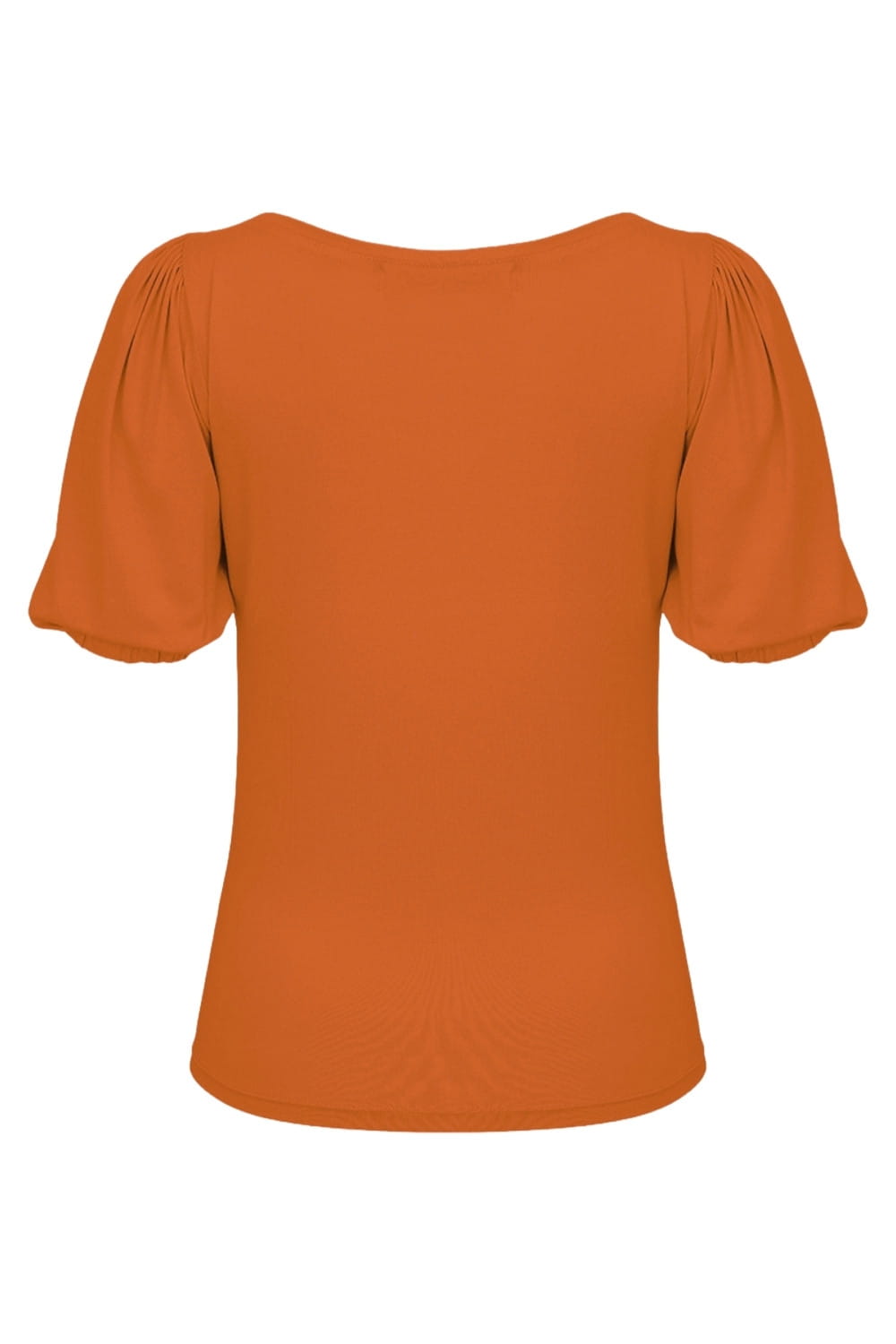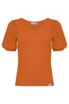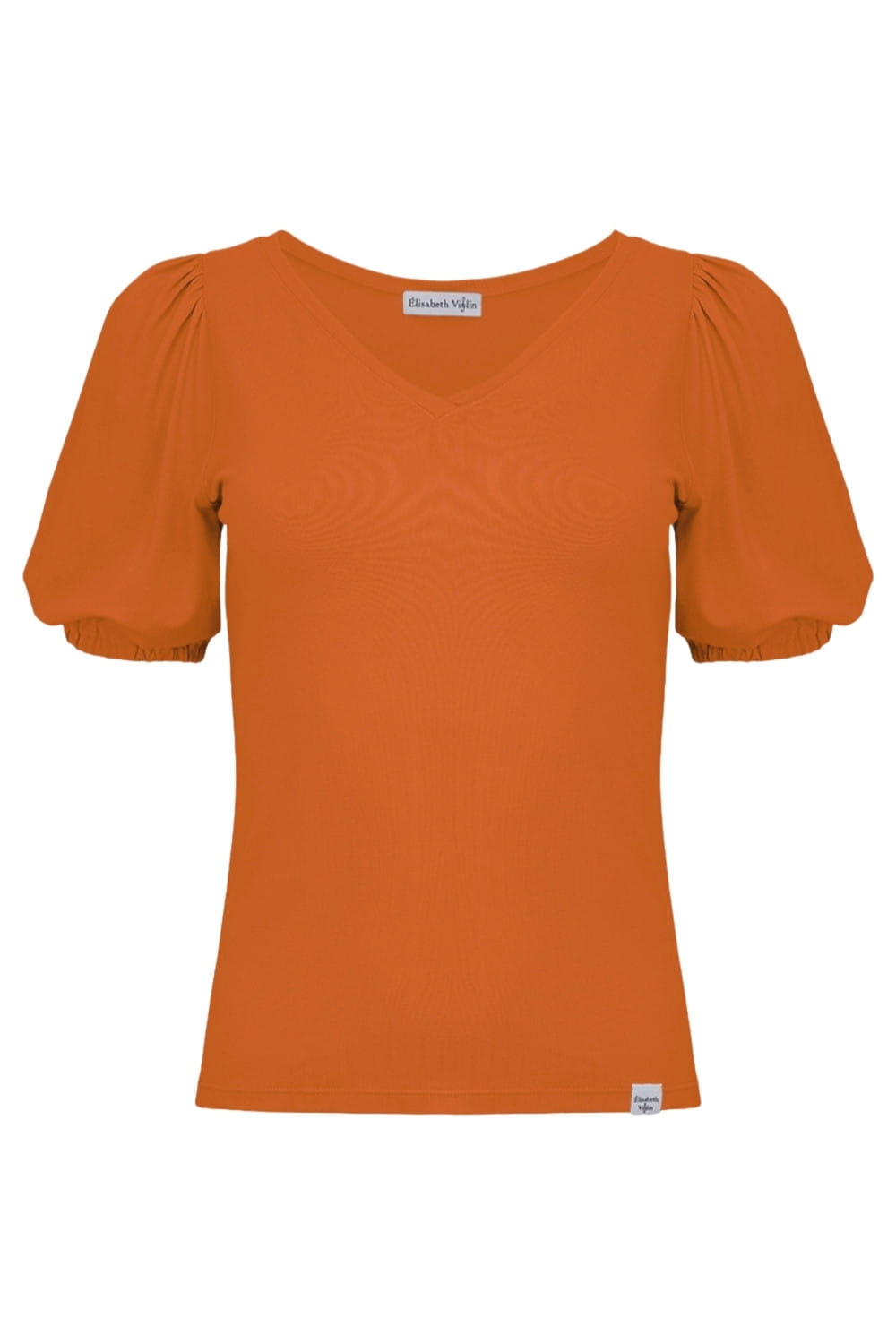 VIVA - Autumn Glaze - wiskozowa taliowana bluzka z dekoltem w serek i krótkimi rękawami z bufkami zakończonymi gumką