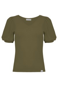 VIVA - Beech - bambusowa taliowana bluzka z dekoltem w serek i krótkimi rękawami z bufkami zakończonymi gumką