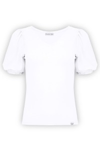 VIVA - Brilliant White - bambusowa taliowana bluzka z dekoltem w serek i krótkimi rękawami z bufkami zakończonymi gumką