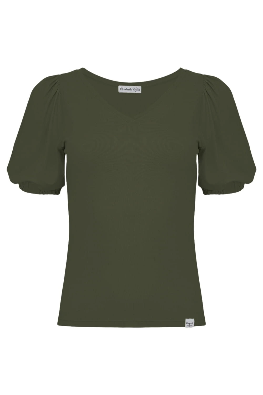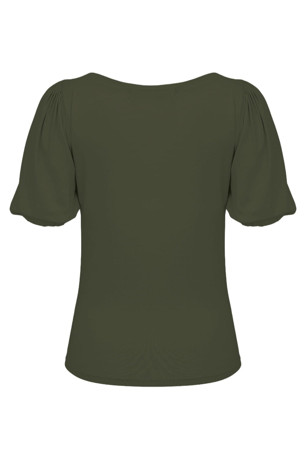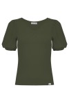 VIVA - Deep Depths - wiskozowa taliowana bluzka z dekoltem w serek i krótkimi rękawami z bufkami zakończonymi gumką