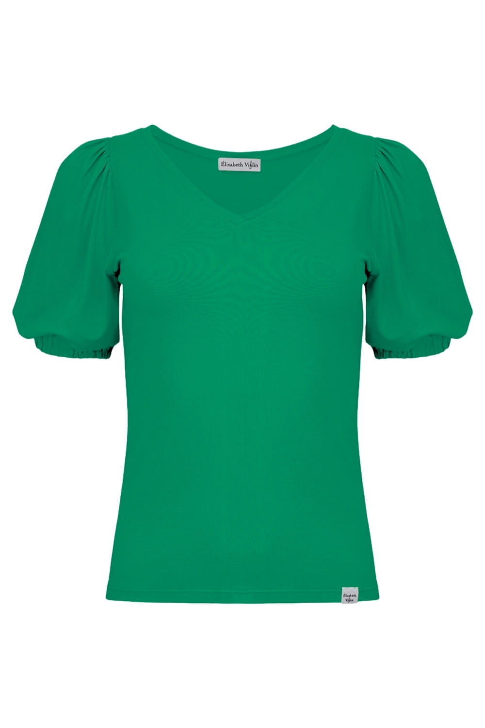VIVA - Deep Green - bawełniana taliowana bluzka z dekoltem w serek i krótkimi rękawami z bufkami zakończonymi gumką