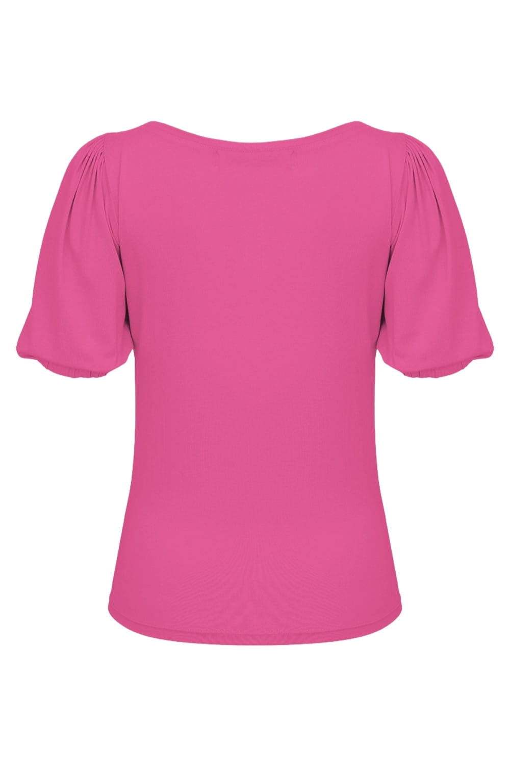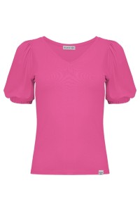 VIVA - Fuchsia Rose - wiskozowa taliowana bluzka z dekoltem w serek i krótkimi rękawami z bufkami zakończonymi gumką