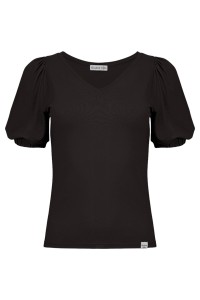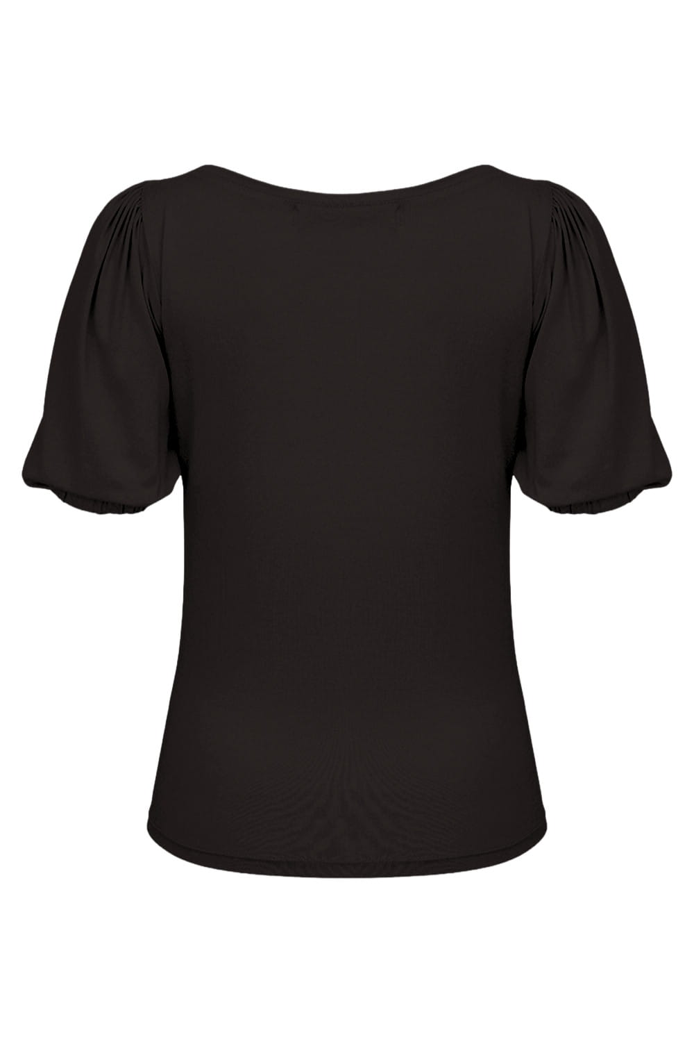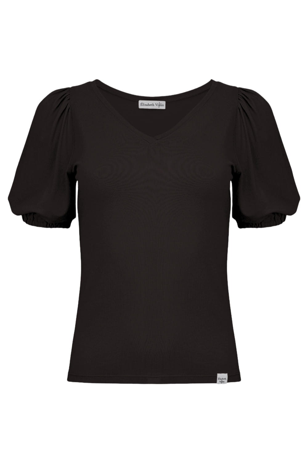 VIVA - Ganache - wiskozowa taliowana bluzka z dekoltem w serek i krótkimi rękawami z bufkami zakończonymi gumką