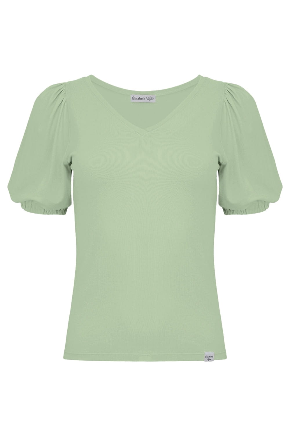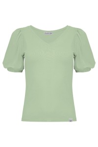 VIVA - Iceberg Green - wiskozowa taliowana bluzka z dekoltem w serek i krótkimi rękawami z bufkami zakończonymi gumką