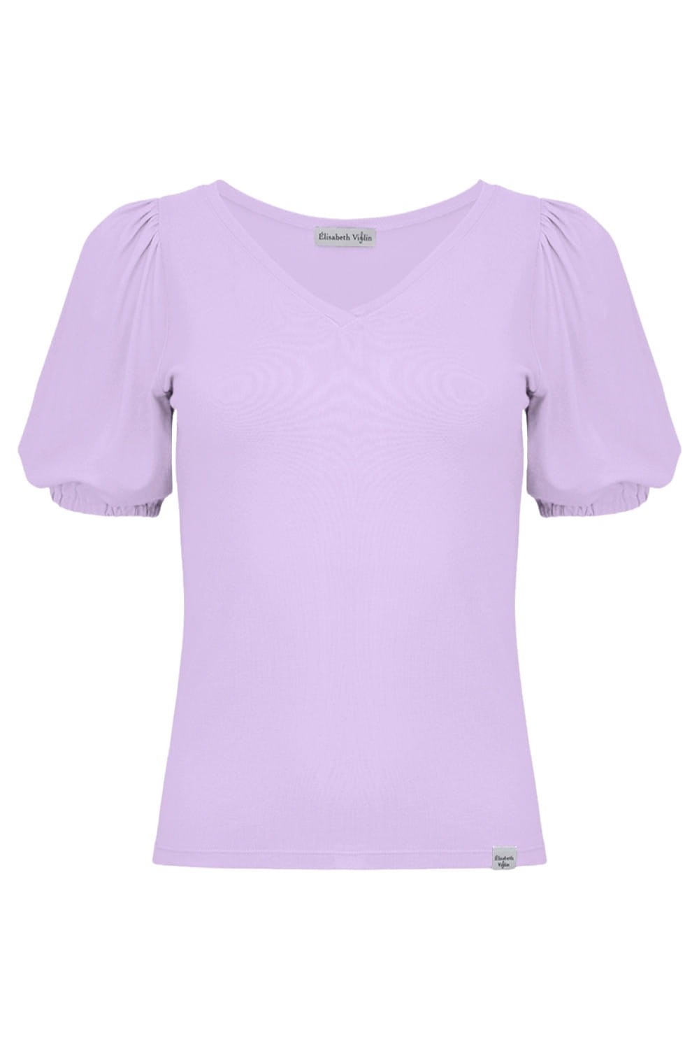 VIVA - Lavender - bambusowa taliowana bluzka z dekoltem w serek i krótkimi rękawami z bufkami zakończonymi gumką