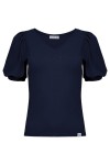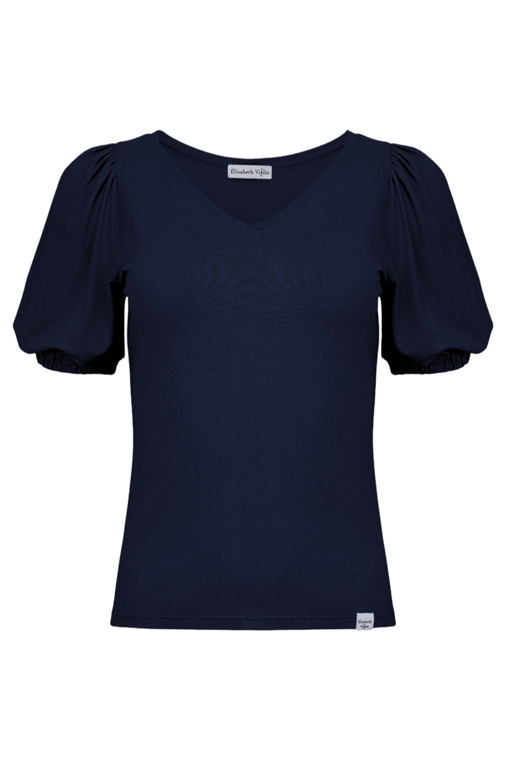 VIVA - Medieval Blue - wiskozowa taliowana bluzka z dekoltem w serek i krótkimi rękawami z bufkami zakończonymi gumką