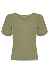VIVA - Mermaid - wiskozowa taliowana bluzka z dekoltem w serek i krótkimi rękawami z bufkami zakończonymi gumką