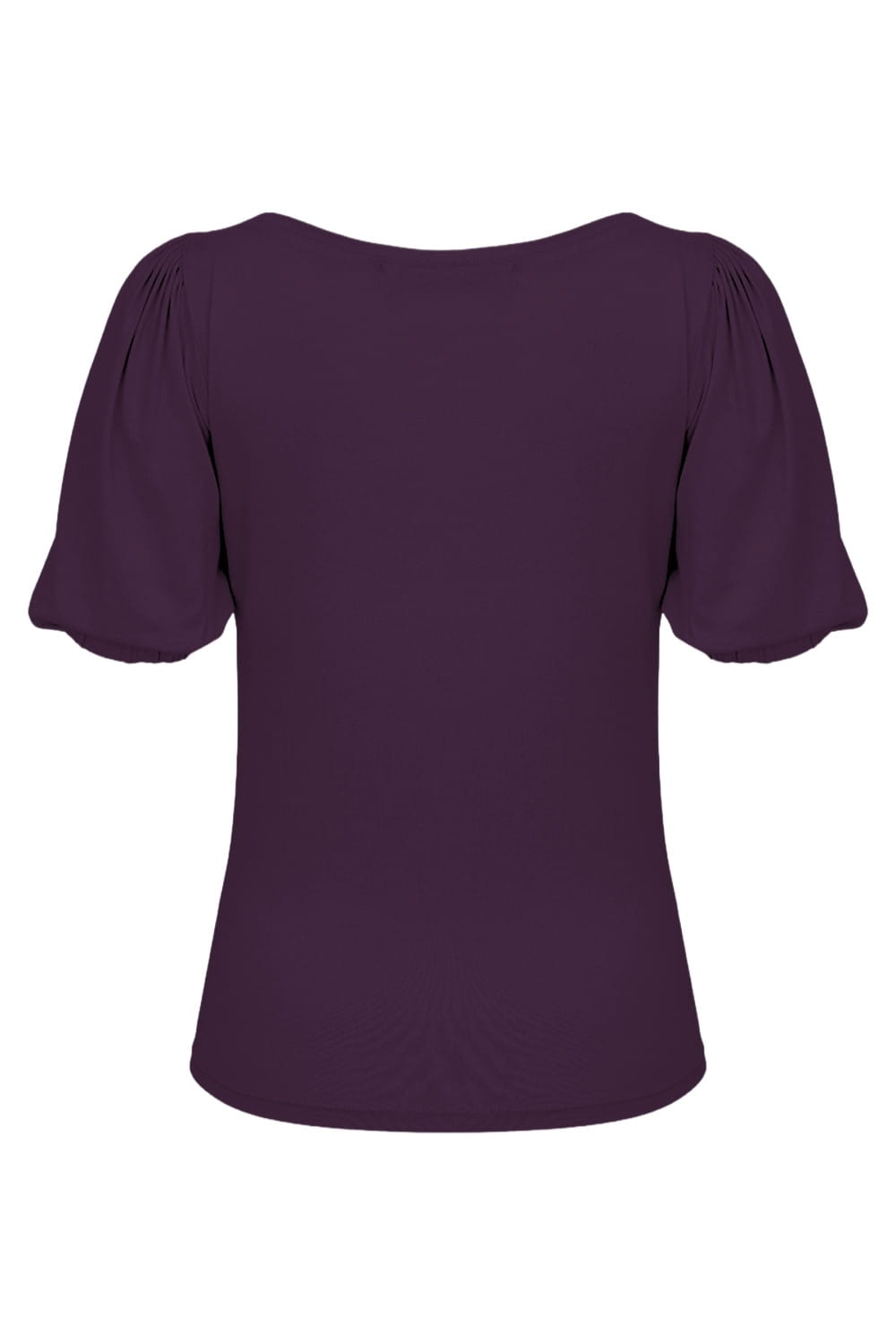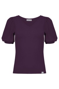 VIVA - Plum Purple - bambusowa taliowana bluzka z dekoltem w serek i krótkimi rękawami z bufkami zakończonymi gumką