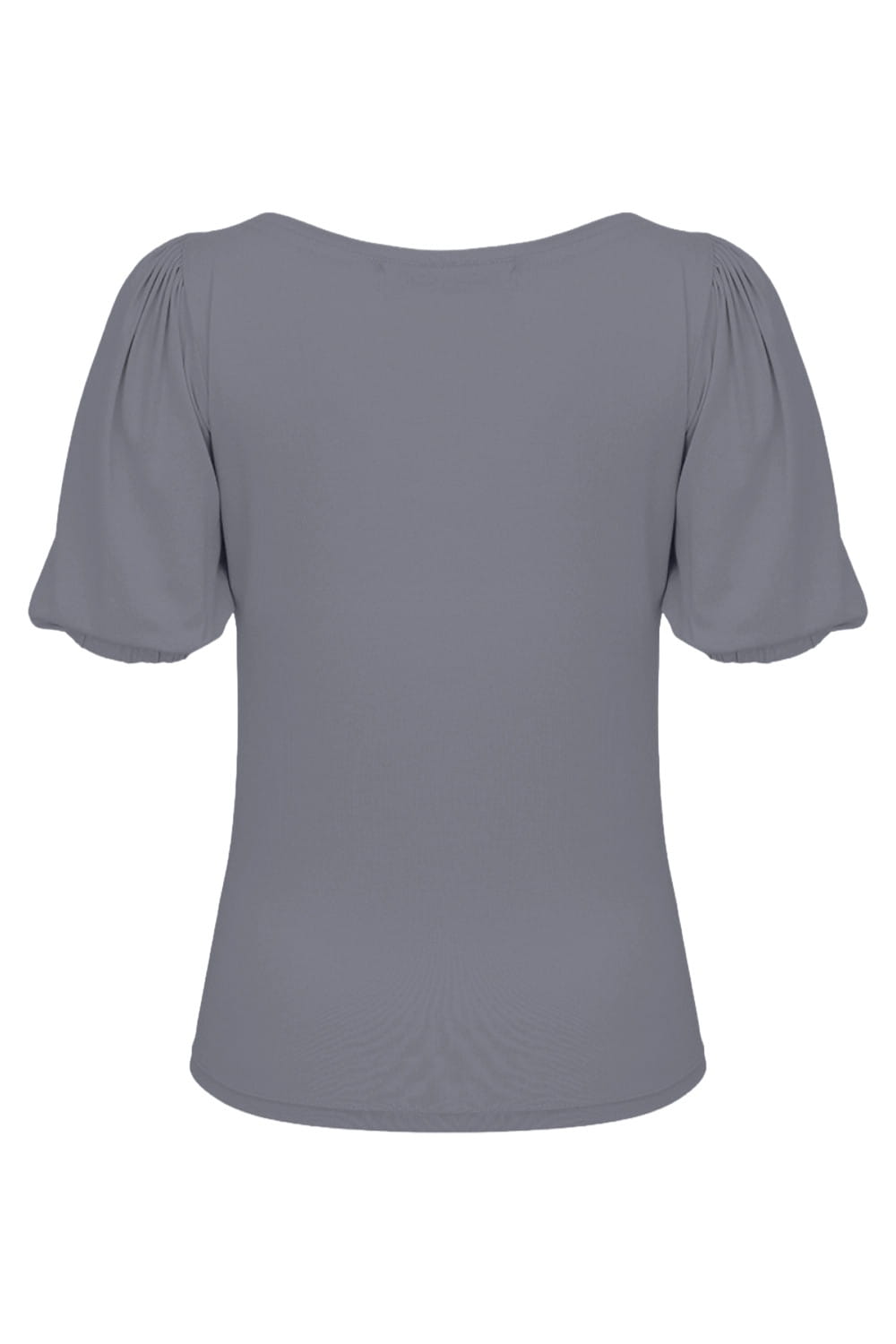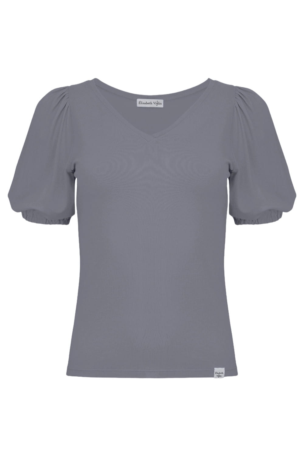 VIVA - Quiet Shade - bambusowa taliowana bluzka z dekoltem w serek i krótkimi rękawami z bufkami zakończonymi gumką