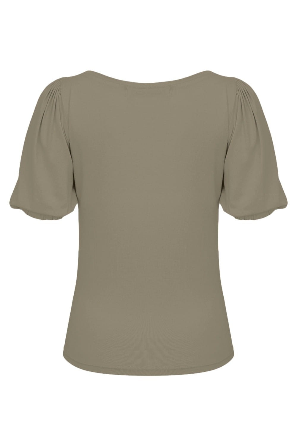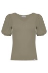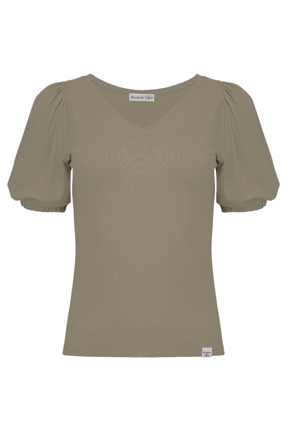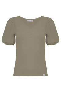 VIVA - Silver Sage - wiskozowa taliowana bluzka z dekoltem w serek i krótkimi rękawami z bufkami zakończonymi gumką