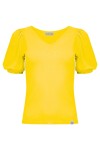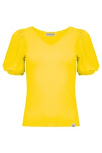 VIVA - Solar Power - bambusowa taliowana bluzka z dekoltem w serek i krótkimi rękawami z bufkami zakończonymi gumką