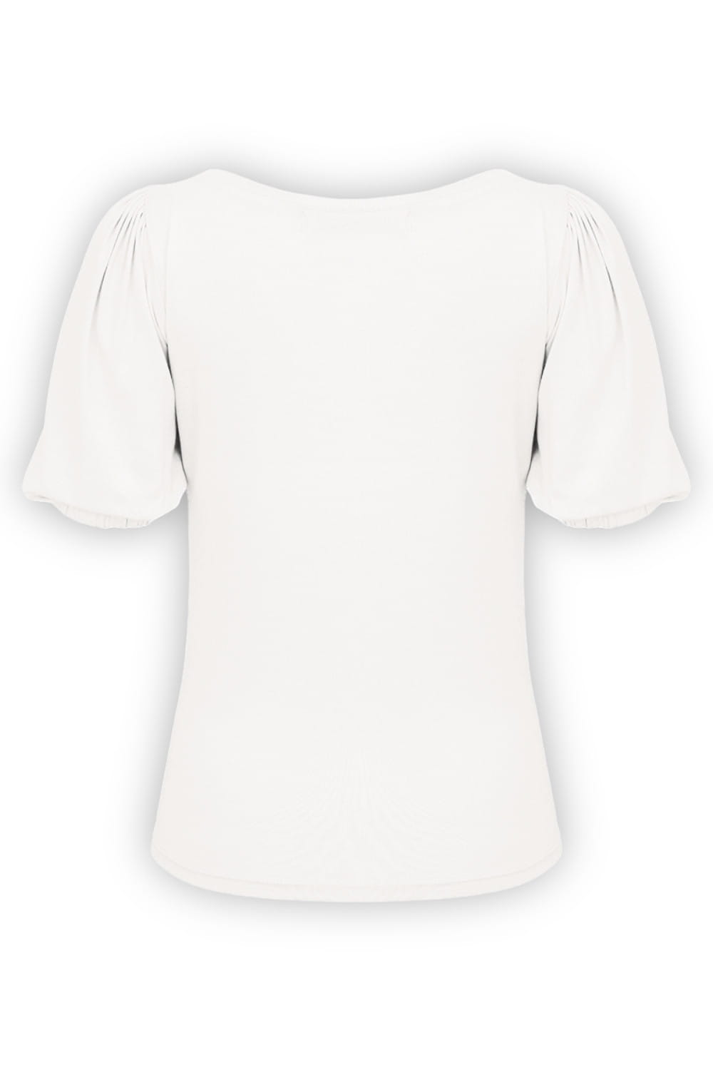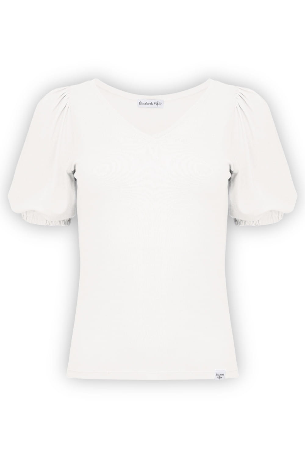 VIVA - Star White - bambusowa taliowana bluzka z dekoltem w serek i krótkimi rękawami z bufkami zakończonymi gumką