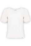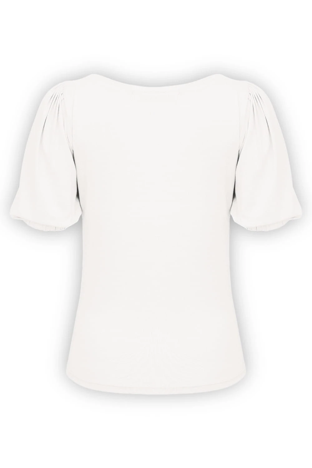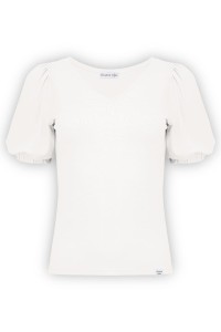 VIVA - Star White - wiskozowa taliowana bluzka z dekoltem w serek i krótkimi rękawami z bufkami zakończonymi gumką