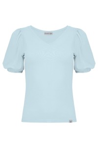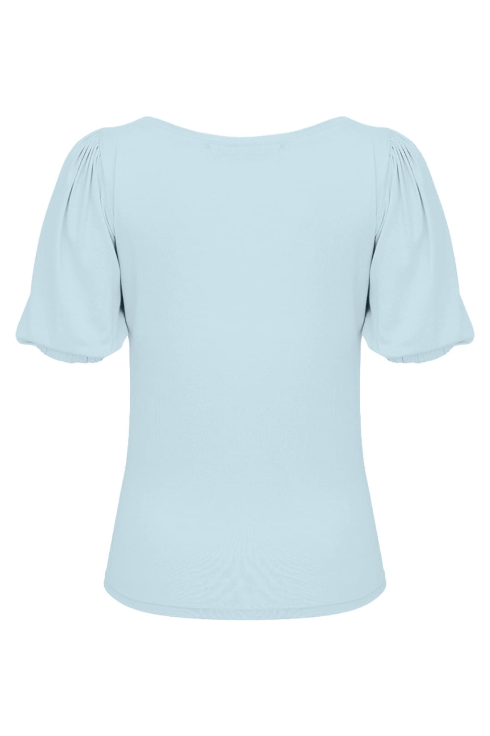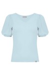 VIVA - Sterling Blue - wiskozowa taliowana bluzka z dekoltem w serek i krótkimi rękawami z bufkami zakończonymi gumką