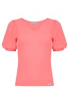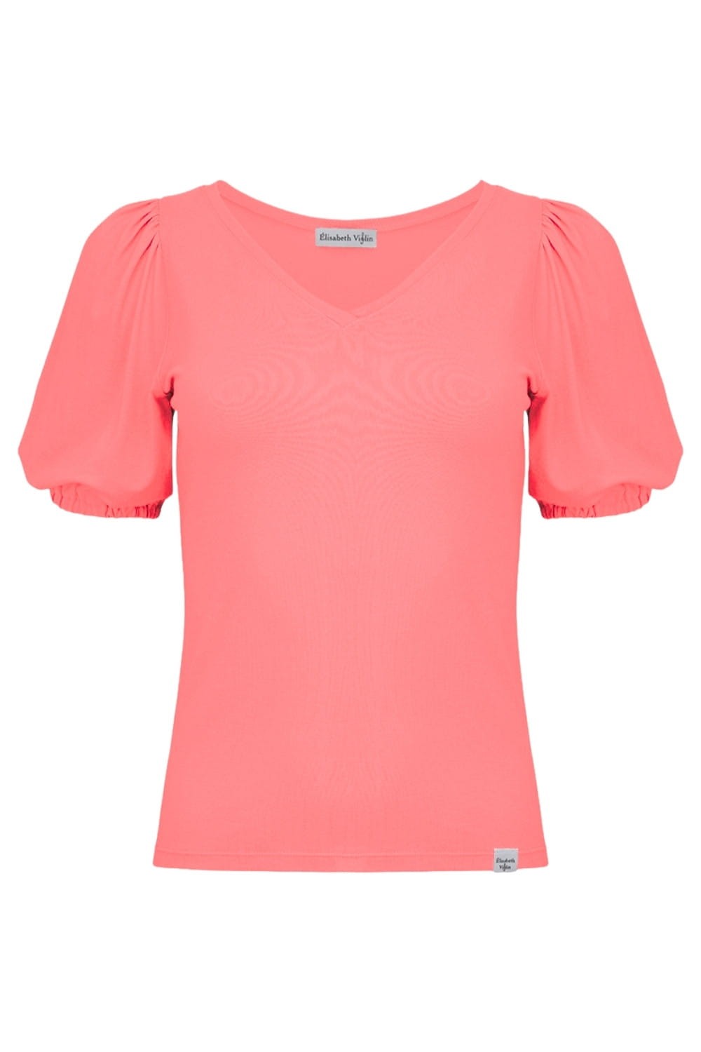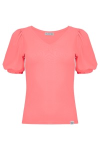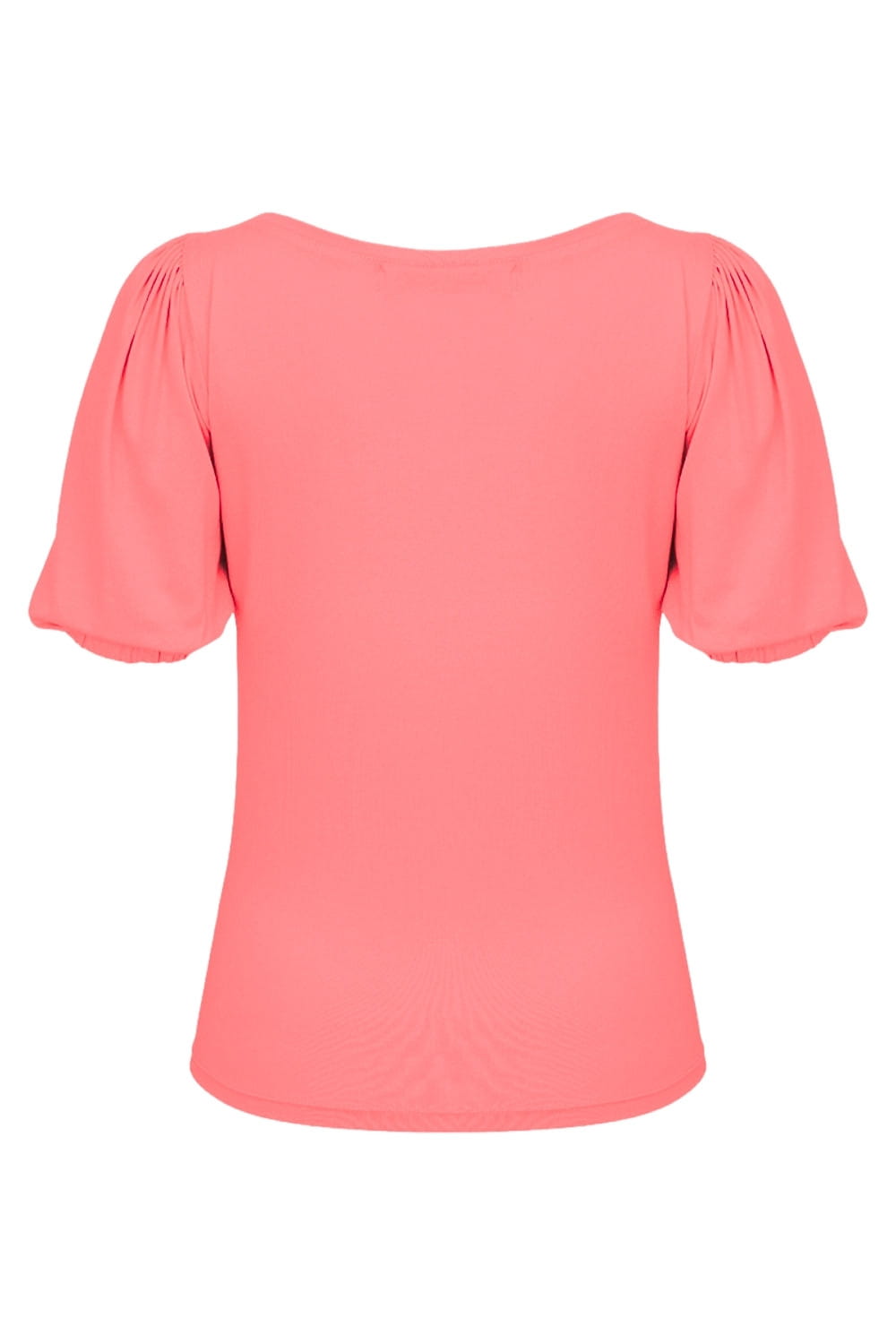 VIVA - Tea Rose - wiskozowa taliowana bluzka z dekoltem w serek i krótkimi rękawami z bufkami zakończonymi gumką