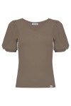 VIVA - Timber Wolf - wiskozowa taliowana bluzka z dekoltem w serek i krótkimi rękawami z bufkami zakończonymi gumką