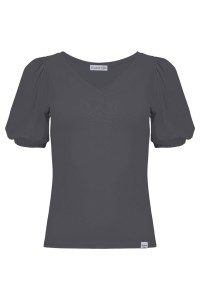 Zachwyca kobiecym dekoltem w kształcie litery „V” oraz subtelnie bufkami przy ramionach, które dodają sylwetce lekkości i romantyzmu. Dzięki elastycznej tkaninie doskonale dopasowuje się do ciała, zapewniając komfort noszenia przez cały dzień.