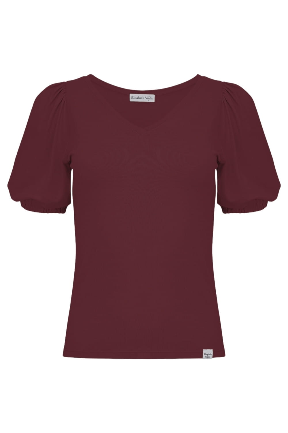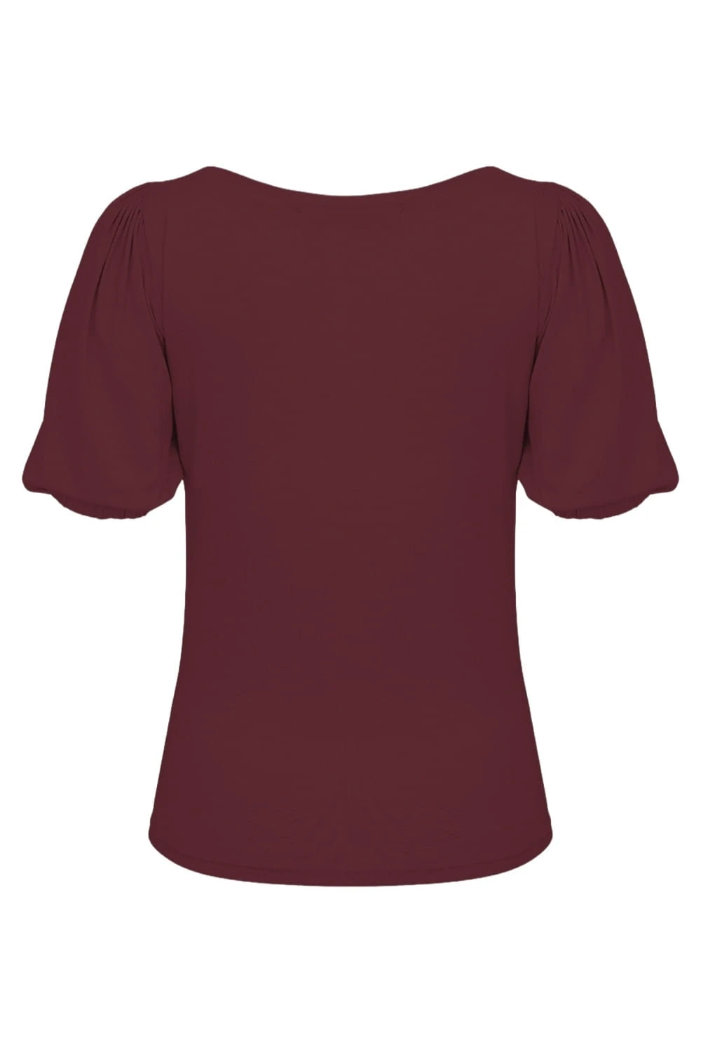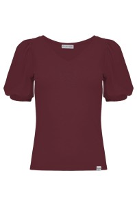 VIVA - Windsor Wine - wiskozowa taliowana bluzka z dekoltem w serek i krótkimi rękawami z bufkami zakończonymi gumką