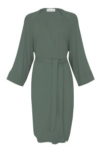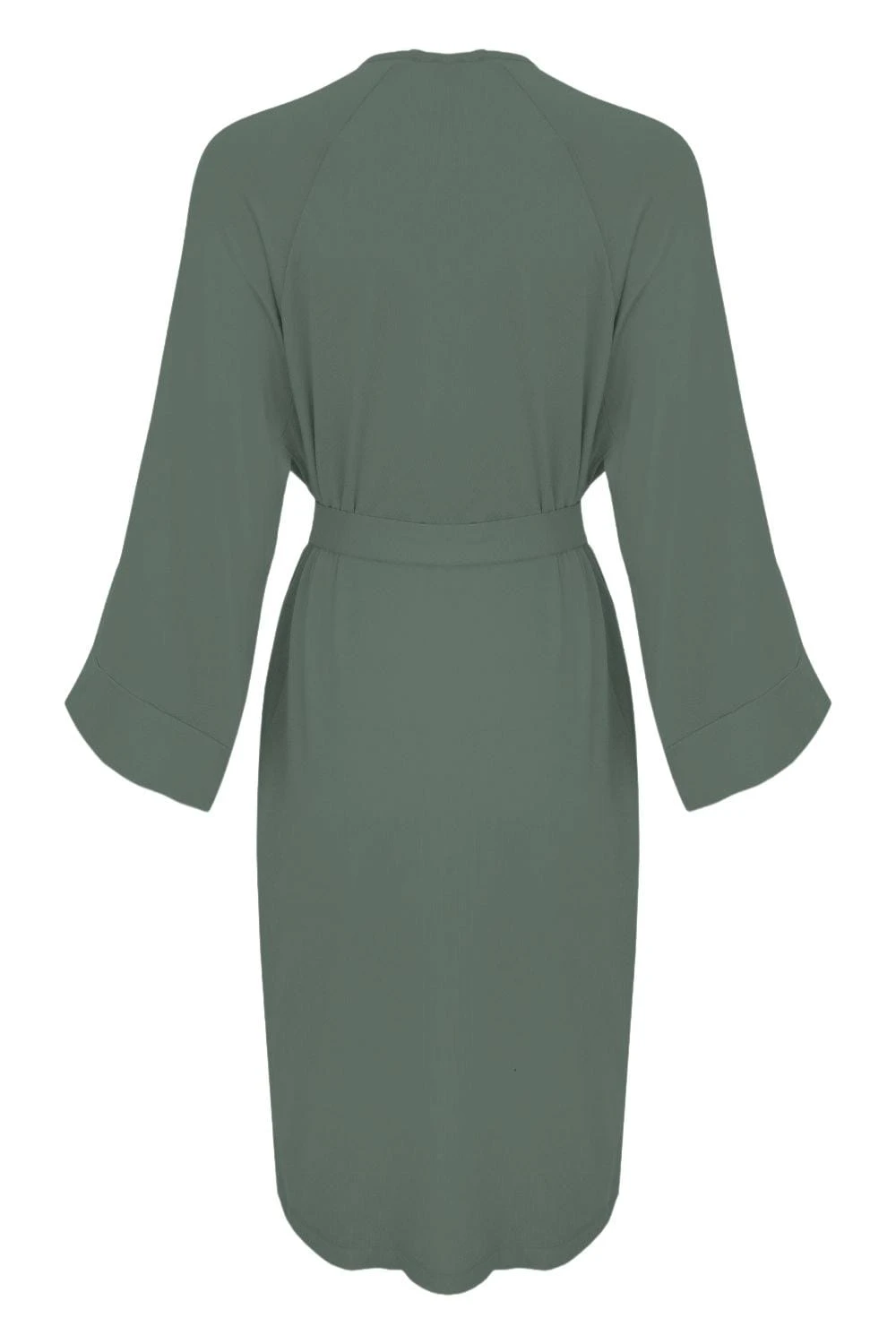 VIVIENNE – Balsam Green - WISKOZA – dzianinowy szlafrok za kolano z rękawami reglanowymi