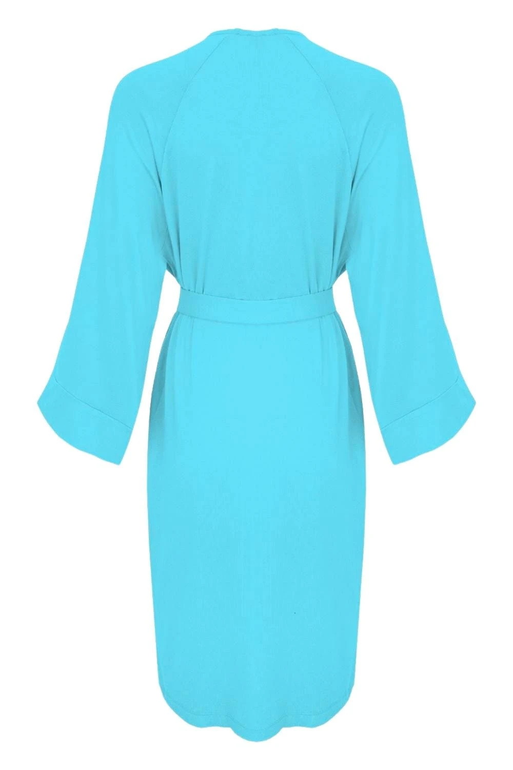 VIVIENNE – Cyan Blue - WISKOZA – dzianinowy szlafrok za kolano z rękawami reglanowymi