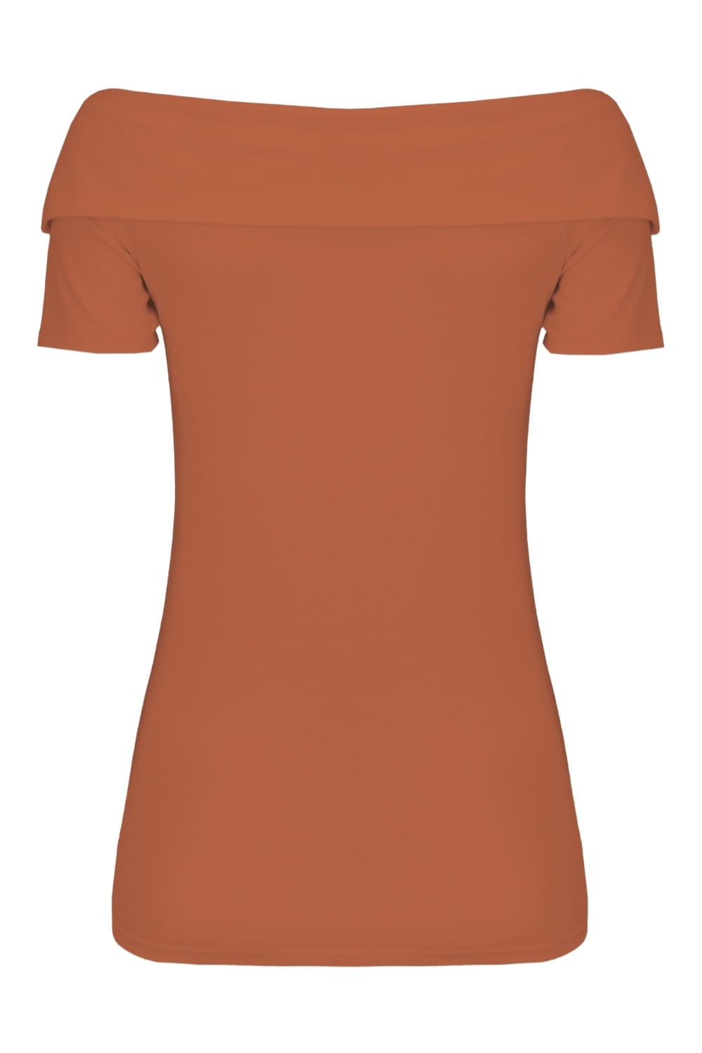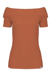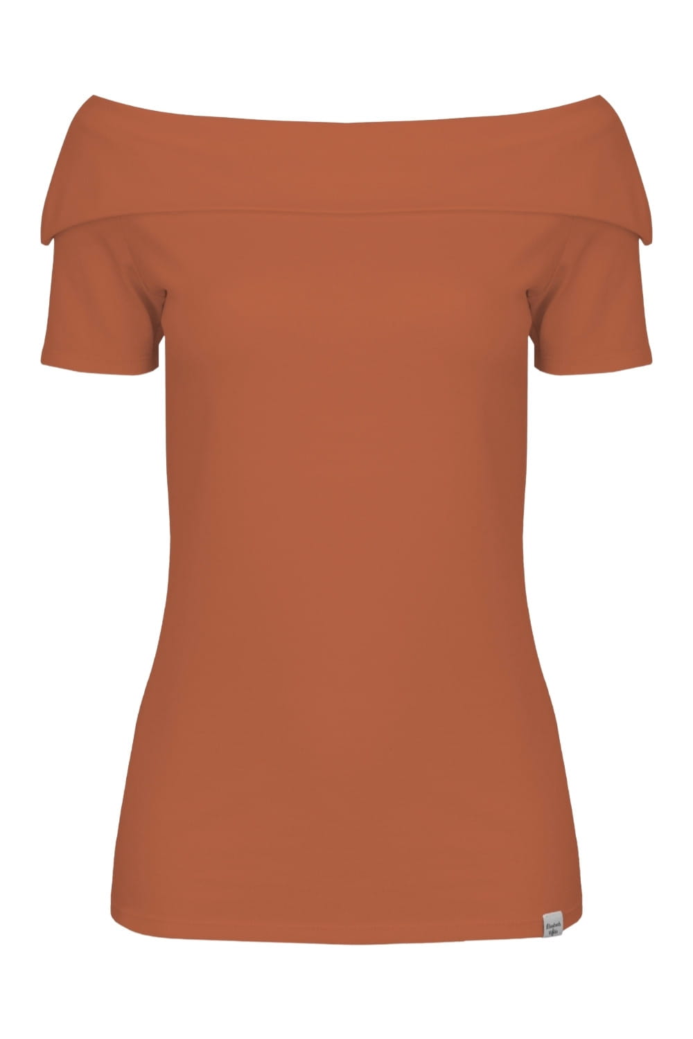 ZALIA - Auburn - bambusowa bluzka off-shoulder z szerokimi kołnierzem i krótkimi rękawami reglanowymi