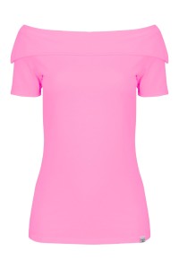 ZALIA - Aurora Pink - bambusowa bluzka off-shoulder z szerokimi kołnierzem i krótkimi rękawami reglanowymi