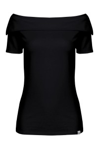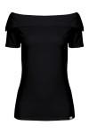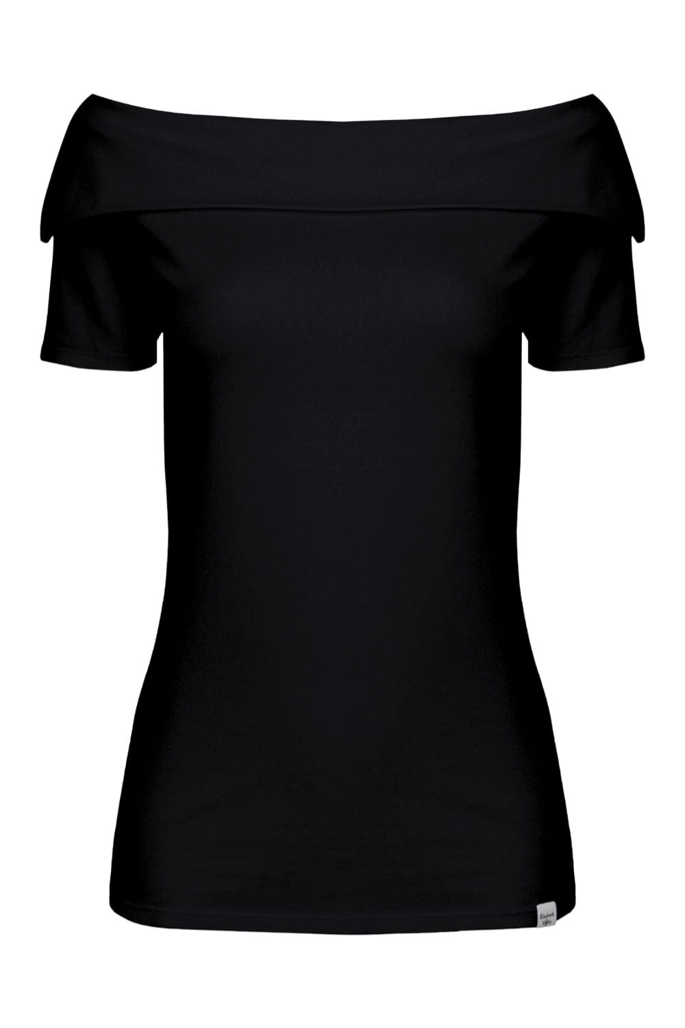 ZALIA - Black - bambusowa bluzka off-shoulder z szerokimi kołnierzem i krótkimi rękawami reglanowymi