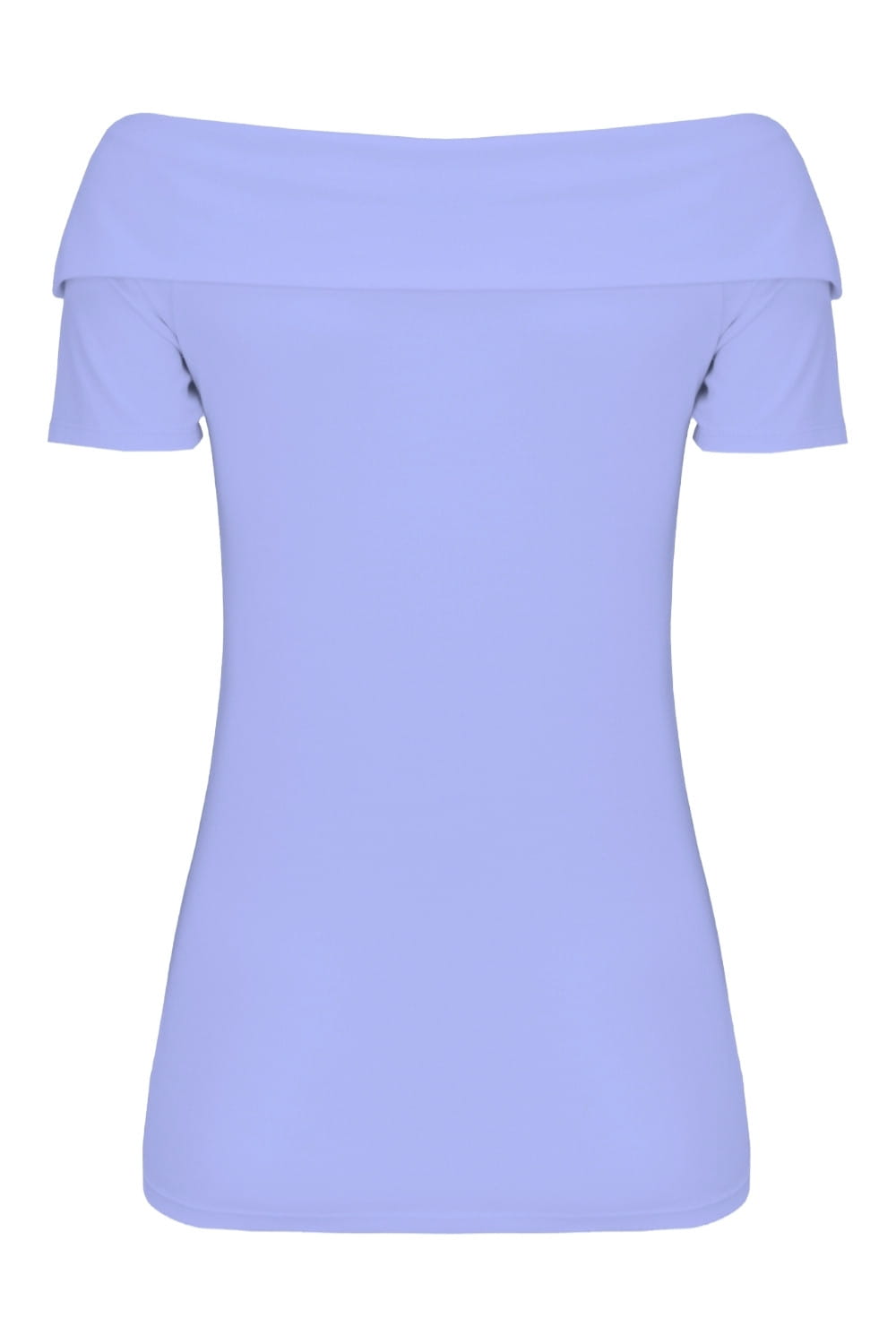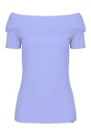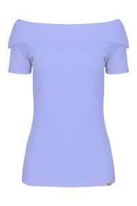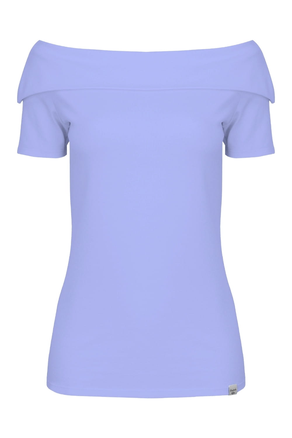 ZALIA - Blue Bonnet - bambusowa bluzka off-shoulder z szerokimi kołnierzem i krótkimi rękawami reglanowymi