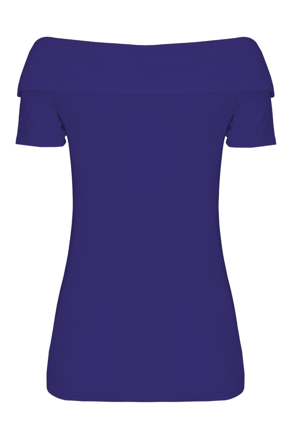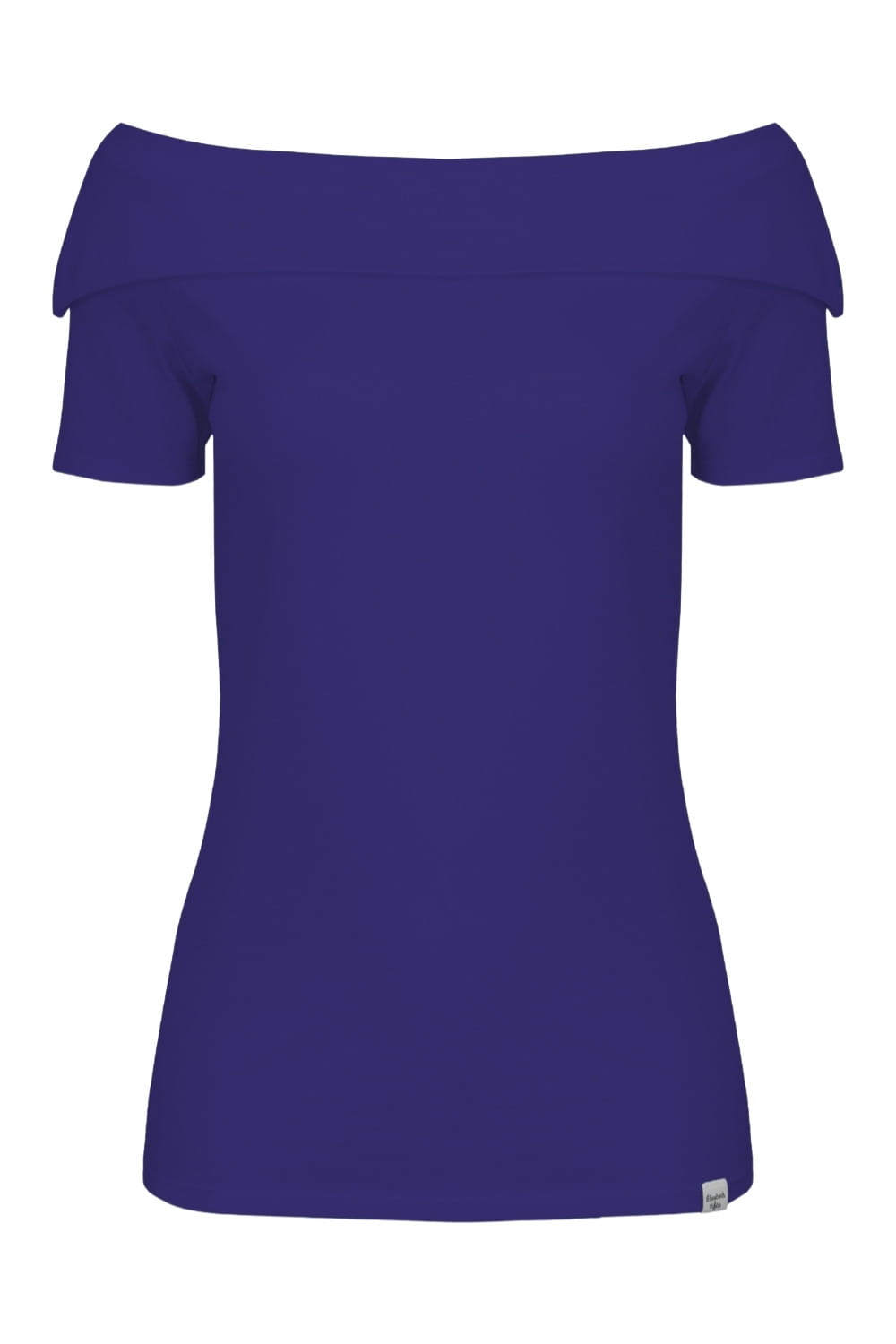 ZALIA - Clematis Blue - bambusowa bluzka off-shoulder z szerokimi kołnierzem i krótkimi rękawami reglanowymi
