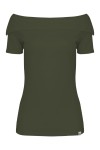 ZALIA - Deep Depths - wiskozowa bluzka off-shoulder z szerokimi kołnierzem i krótkimi rękawami reglanowymi