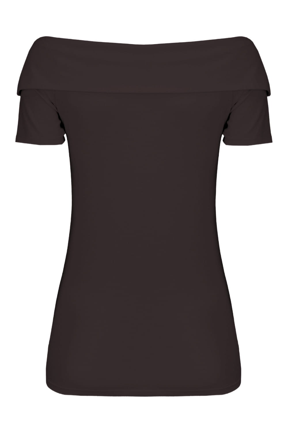 ZALIA - Java - bambusowa bluzka off-shoulder z szerokimi kołnierzem i krótkimi rękawami reglanowymi