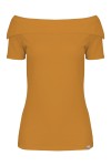 ZALIA - Sudan Brown - wiskozowa bluzka off-shoulder z szerokimi kołnierzem i krótkimi rękawami reglanowymi