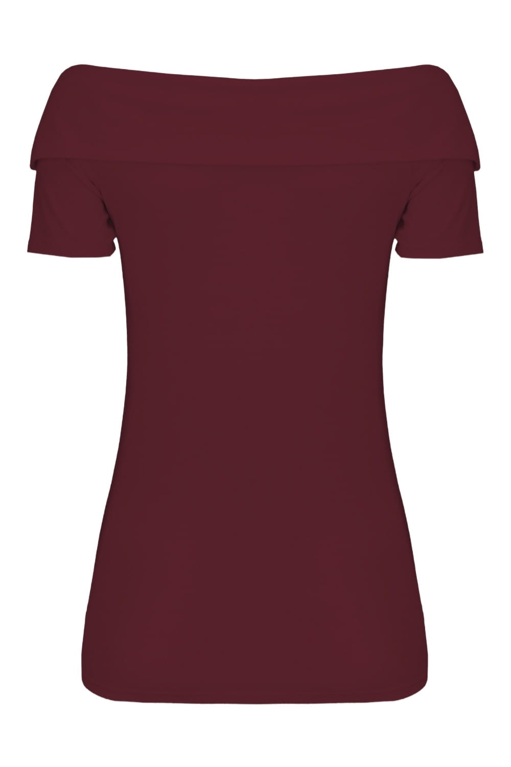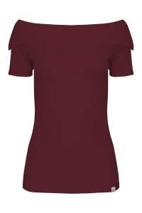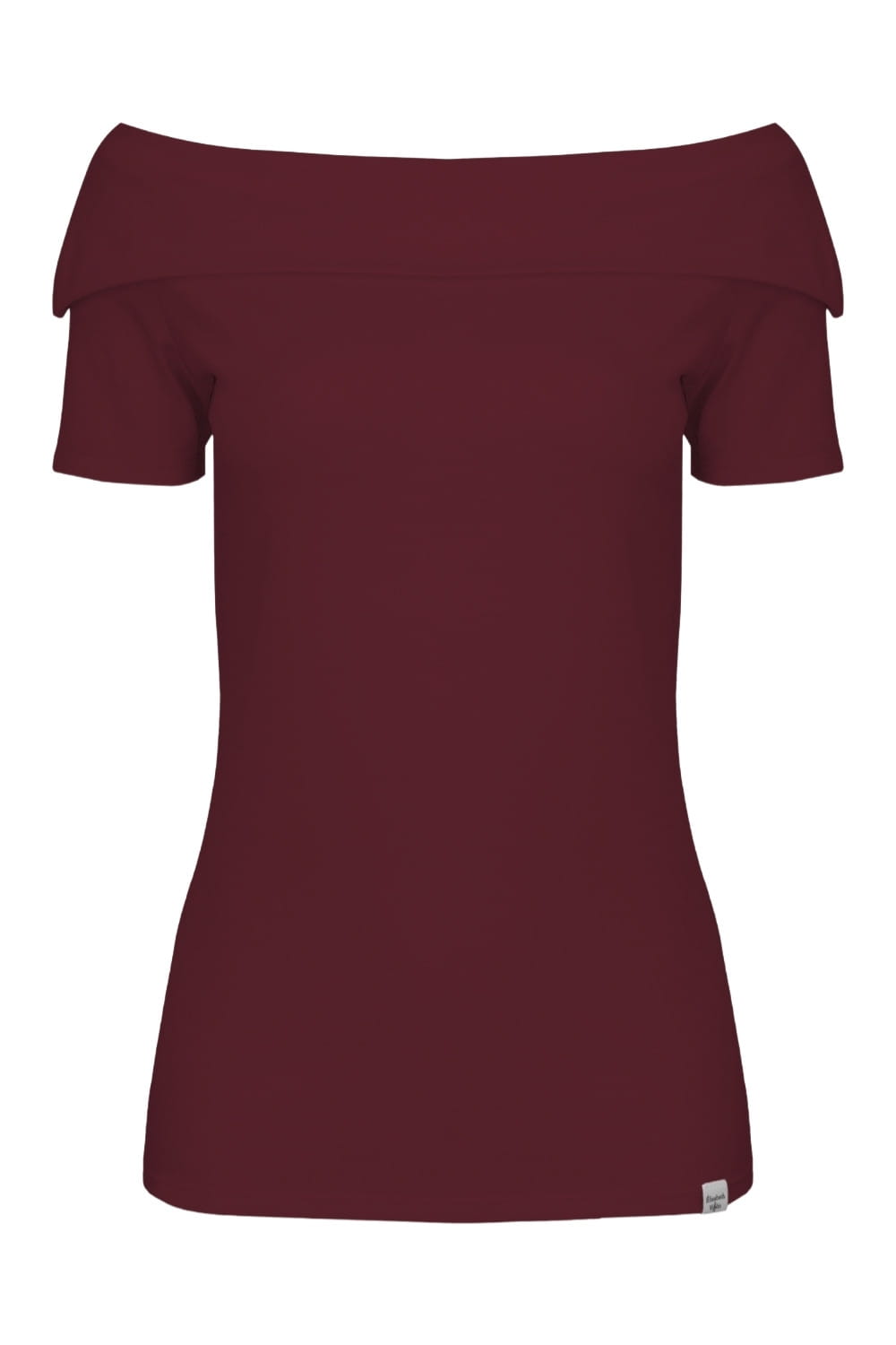 ZALIA - Zinfandel - bambusowa bluzka off-shoulder z szerokimi kołnierzem i krótkimi rękawami reglanowymi